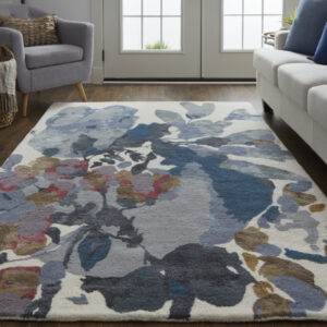 10′ X 14′ Blue Gray And Pink Wool Floral Tufted Handmade Area Rug