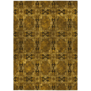 8′ X 10′ Gold Abstract Washable Non Skid Indoor Outdoor Area Rug