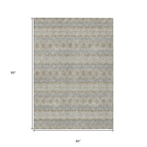 5′ X 8′ Silver Gray And Gold Floral Medallion Washable Indoor Outdoor Area Rug
