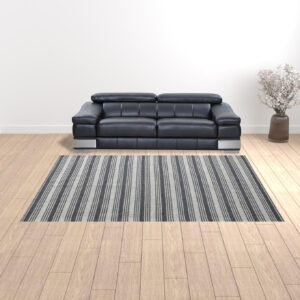 9′ x 12′ Gray Wool Striped Hand Woven Area Rug