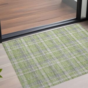 3′ X 5′ Green and Gray Plaid Washable Non Skid Indoor Outdoor Area Rug