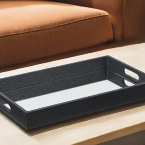 Black Shagreen Tray with Beveled Mirror