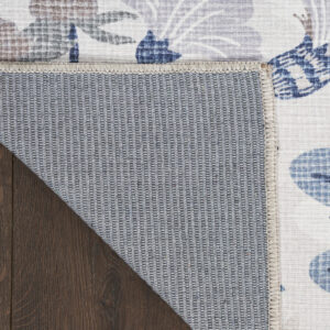 10′ Blue and Off White Abstract Washable Non Skid Runner Area Rug