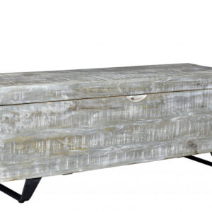 46″ Gray and Black Distressed Solid Wood Storage Bench with Flip Top