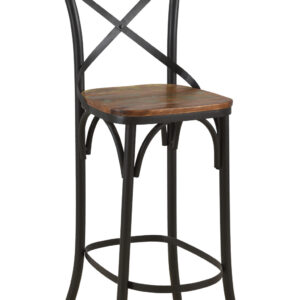30″ Brown and Black Solid Wood and Metal Counter Height Bar Chair
