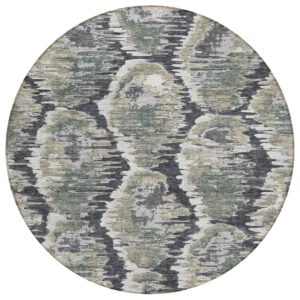 8′ Charcoal Gray And Silver Round Abstract Washable Indoor Outdoor Area Rug