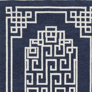 8’X10′ Navy Blue Ivory Hand Tufted Greek Key Medallion Indoor Area Rug