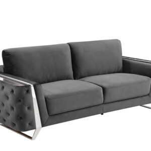 Two Piece Indoor Dark Gray Italian Leather Five Person Seating Set