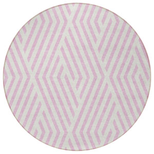 8′ Round Pink and White Round Geometric Washable Non Skid Indoor Outdoor Area Rug