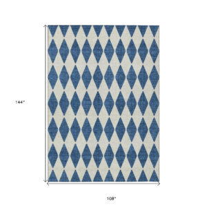 9′ X 12′ Navy Blue And Ivory Geometric Washable Indoor Outdoor Area Rug