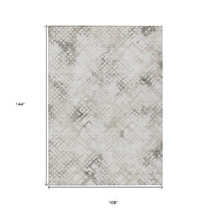 9′ X 12′ Taupe Beige And Brown Geometric Washable Indoor Outdoor Area Rug