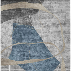 8′ X 10′ Blue Gray And Charcoal Abstract Washable Indoor Outdoor Area Rug