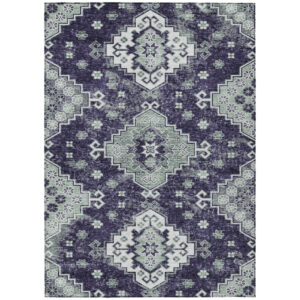 3′ X 5′ Purple Eggplant And Sage Medallion Washable Indoor Outdoor Area Rug