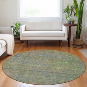 8′ Green Gold And Charcoal Round Abstract Washable Indoor Outdoor Area Rug
