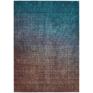 8′ X 10′ Teal Blue Chocolate And Charcoal Ombre Washable Indoor Outdoor Area Rug