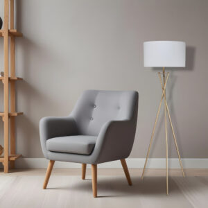 65″ Gold And White Tripod Floor Lamp With White Fabric Drum Shade