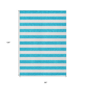 8′ X 10′ Teal and White Striped Washable Indoor Outdoor Area Rug