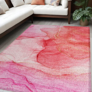 5′ X 8′ Pink Abstract Washable Non Skid Indoor Outdoor Area Rug