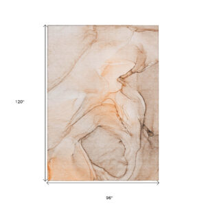 9′ X 12′ Beige Abstract Washable Non Skid Indoor Outdoor Area Rug
