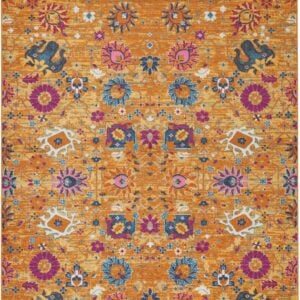 8’ X 10’ Sun Gold And Navy Distressed Area Rug
