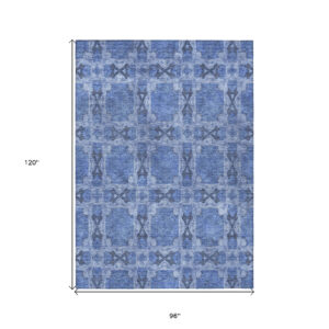 8′ X 10′ Denim Blue and Gray Floral Medallion Washable Non Skid Indoor Outdoor Area Rug
