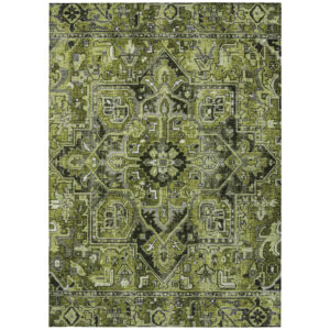 8′ X 10′ Olive Green and Dark Green Oriental Washable Non Skid Indoor Outdoor Area Rug