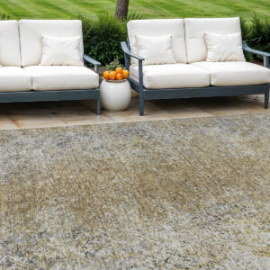 8′ Green Gray And Gold Round Ikat Washable Indoor Outdoor Area Rug