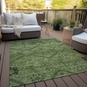 5′ X 8′ Olive Green Fern Green And Artichoke Green Floral Washable Indoor Outdoor Area Rug