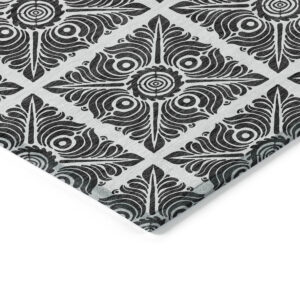 5′ X 8′ Gray Charcoal And Silver Floral Washable Indoor Outdoor Area Rug