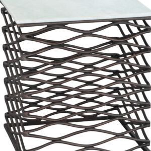 22″ White And Bronze Marble And Aluminum Square Frame End Table