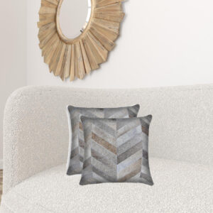 18 X 18 Gray Cowhide Throw Pillow