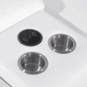 White Italian Leather Power Reclining Curved Eight Piece Corner Sectional With Console
