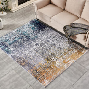 2′ x 3′ Blue and Silver Abstract Shag Printed Washable Non Skid Area Rug
