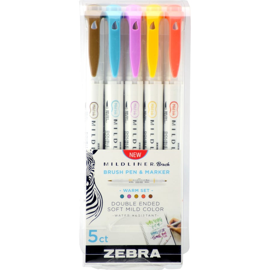 Zebra Pen Mildliner Brush Double-Ended Creative Marker Warm Color Pack