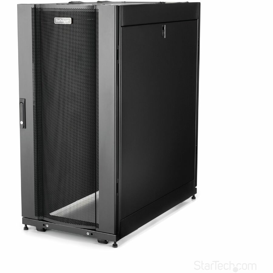 Startechcom 25u Server Rack Cabinet – 4 Post Adjustable Depth 7-35 Locking Vented Rolling Networkdatait Enclosure Wcasterscable Mgmt