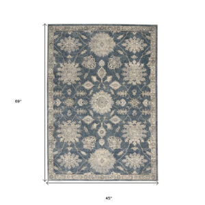 4′ x 6′ Blue and Beige Oriental Power Loom Non Skid Area Rug