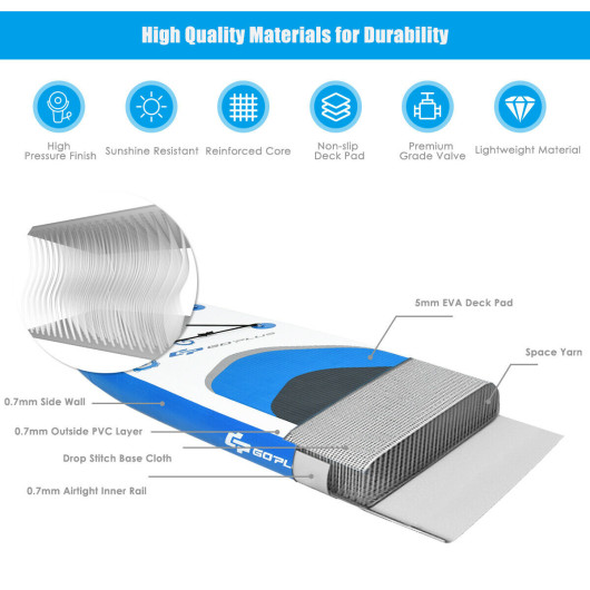 ● Non-slip Deck and High-quality Materials: The non-slip and soft deck can effectively prevent slipping and accidents to enhance safety. 1000 D drop stitch PVC material enables paddle board to withstand great pressure without deformation or bursting for long time use. The adjustable paddle can float on water so you don’t have to worry about it falling into the water.
