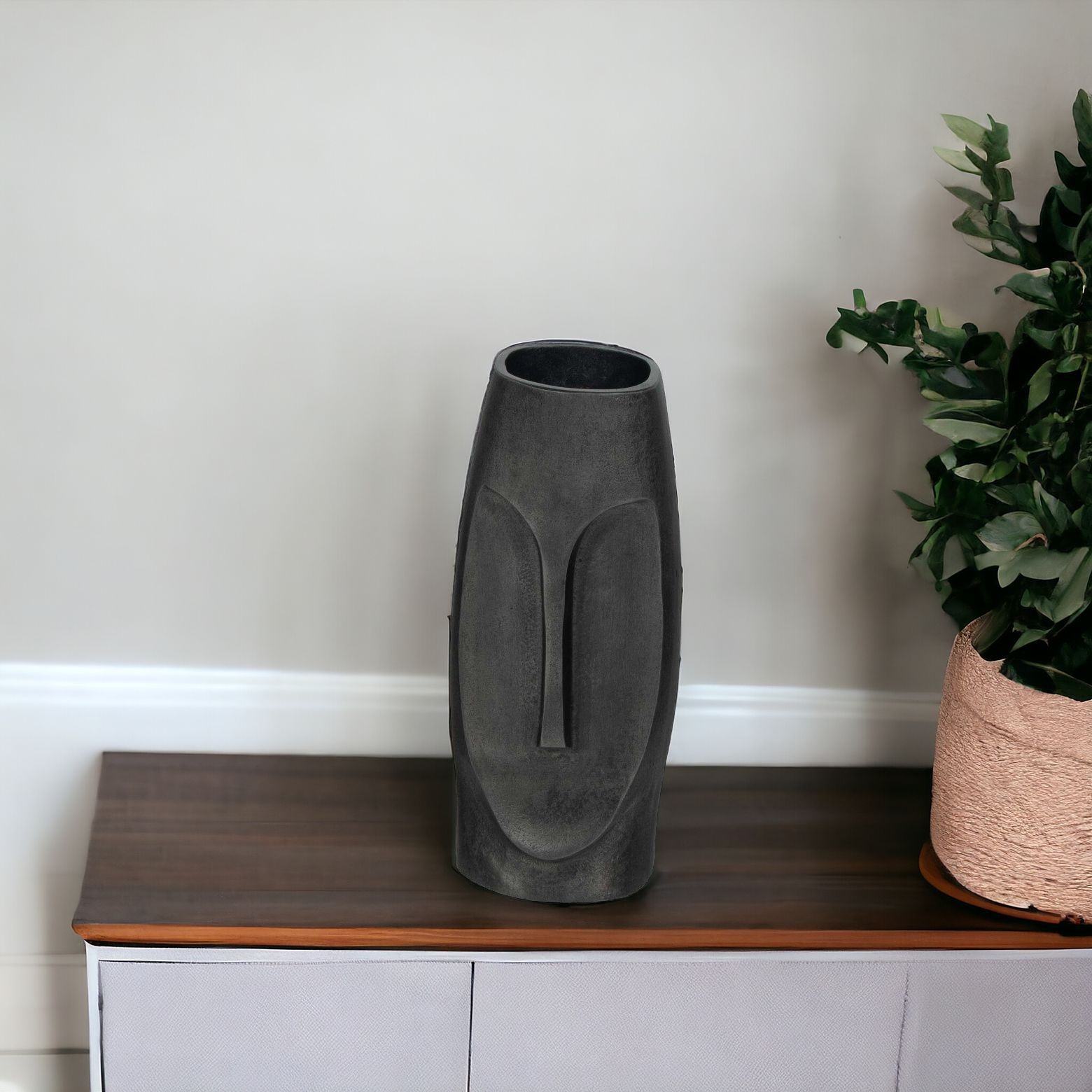 Bring a touch of modern elegance to your home decor with our 10-inch gray aluminum faces cylinder table vase. This stunning table vase is crafted from high-quality rough hewn cast aluminum that adds a contemporary flair to any space, making it the perfect addition to your living room, dining area, or bedroom. With its watertight design, you can confidently display your favorite flowers, creating a beautiful centerpiece or accent piece. The subtle gray color complements a variety of color palettes, while the unique faces design adds a touch of modern understated whimsy and personality. Add a dash of sophistication to your home with this stylish and versatile vase. 10-inch H x 5-inch W x 5-inch D