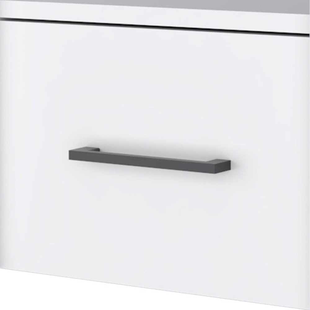 Good looking design and practical styling meet to form this 10-inch white one drawer faux wood floating nightstand. Robust in design, the bed side table has been expertly crafted from manufactured wood. The easy open drawer allows you hidden storage to keep your essentials close at hand. The unsung hero of the bedroom, this nightstand is perfect for keeping a glass of water, lamp, alarm clock, jewelry, and more, close by and easily accessible. Versatile in use this nightstand would also work as a great end table in the living room, hallway, or office. 9.8-inch H x 13.8-inch W x 13.2-inch D