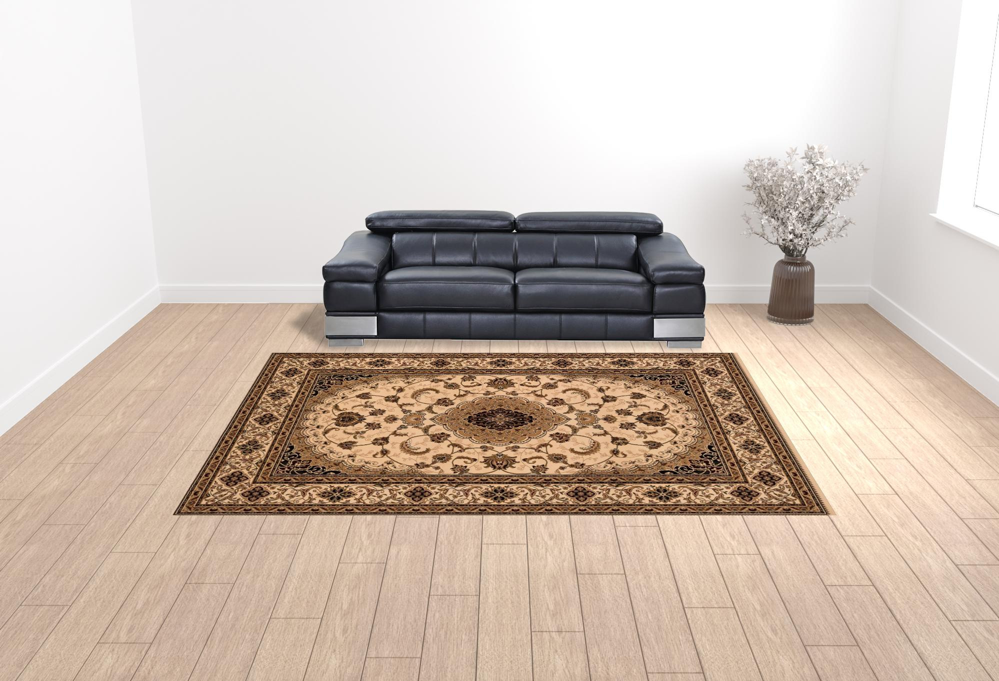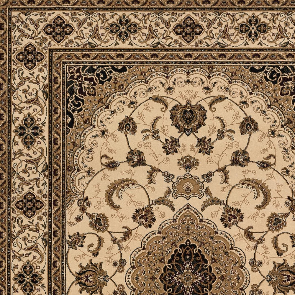 Add great coloration and comfortable texture to your space with this 10′ x 13′ cream oriental washable non skid area rug. This rectangle shaped rug features a oriental design in cream to give it visual interest. A classic shape marries with good looking design for your space The coloring of this rug adds a delightfully neutral tone to your home and will easily match with most any decor. Made in Turkey, this rug offers high quality combined with good looking designer sensibilities. Ideal for spaces with kids and pets, this rug is stain resistant to help repel stains and spilled liquids. Place this area rug against a hardwood or tile floor and it will enliven your living space with style and sophistication. 159″ H x 117″ W x 0.6″ D