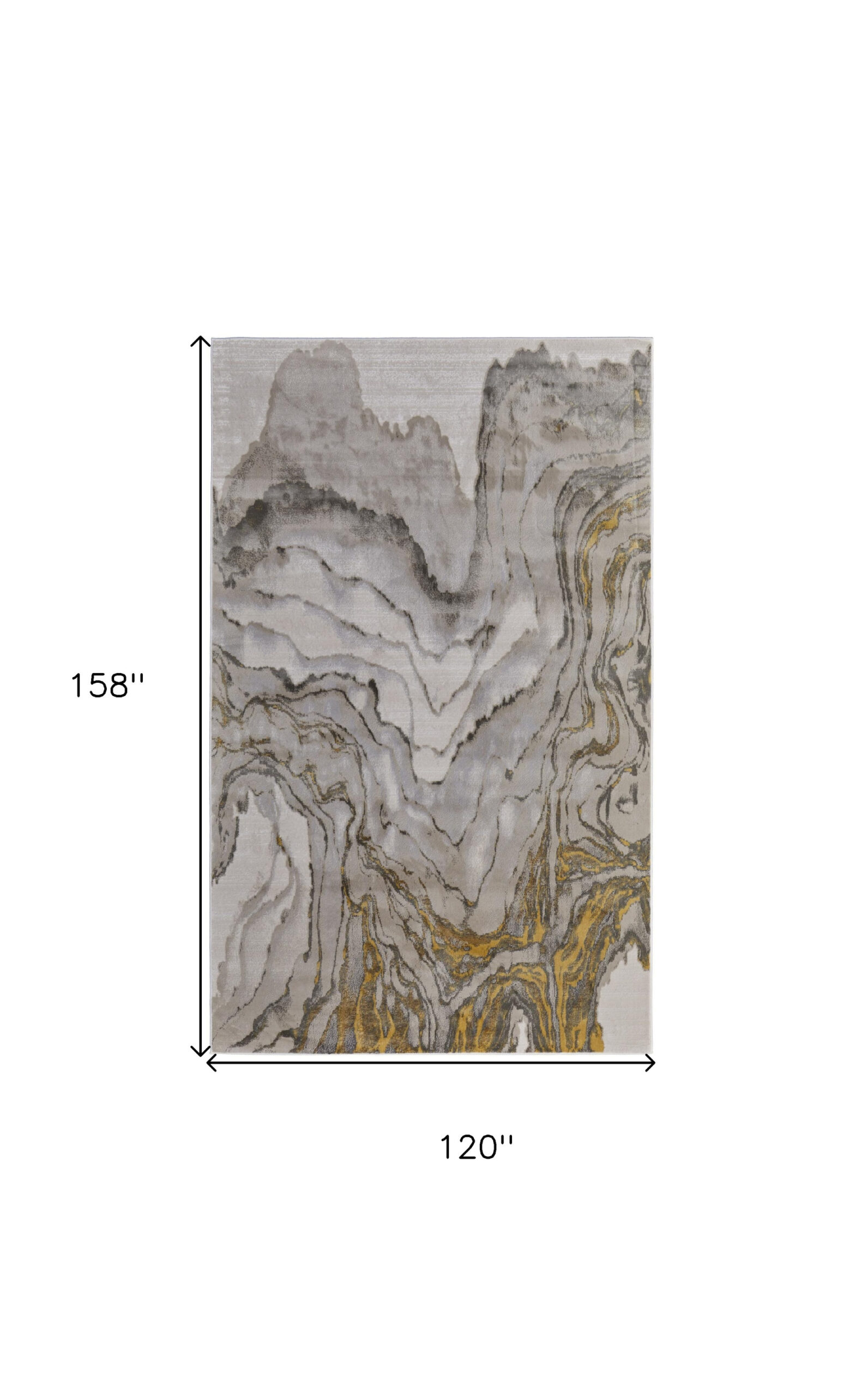 10′ x 13′ Gold and Ivory Abstract Area Rug