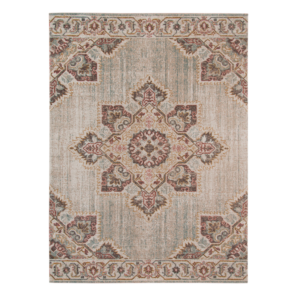 Add some artistry to your room with this 10 feet x 14 feet beige medallion power loom area rug with fringe. This rectangle shaped rug features a medallion design in beige to give it visual interest. A classic shape marries with good looking design for your space The coloring of this rug adds a delightfully neutral tone to your home and will easily match with most any decor. Ideal for spaces with kids and pets, this rug is stain resistant to help repel stains and spilled liquids. Place this area rug against a hardwood or tile floor and it will enliven your living space with style and sophistication. 0.15 inches H x 118 inches W x 166 inches D