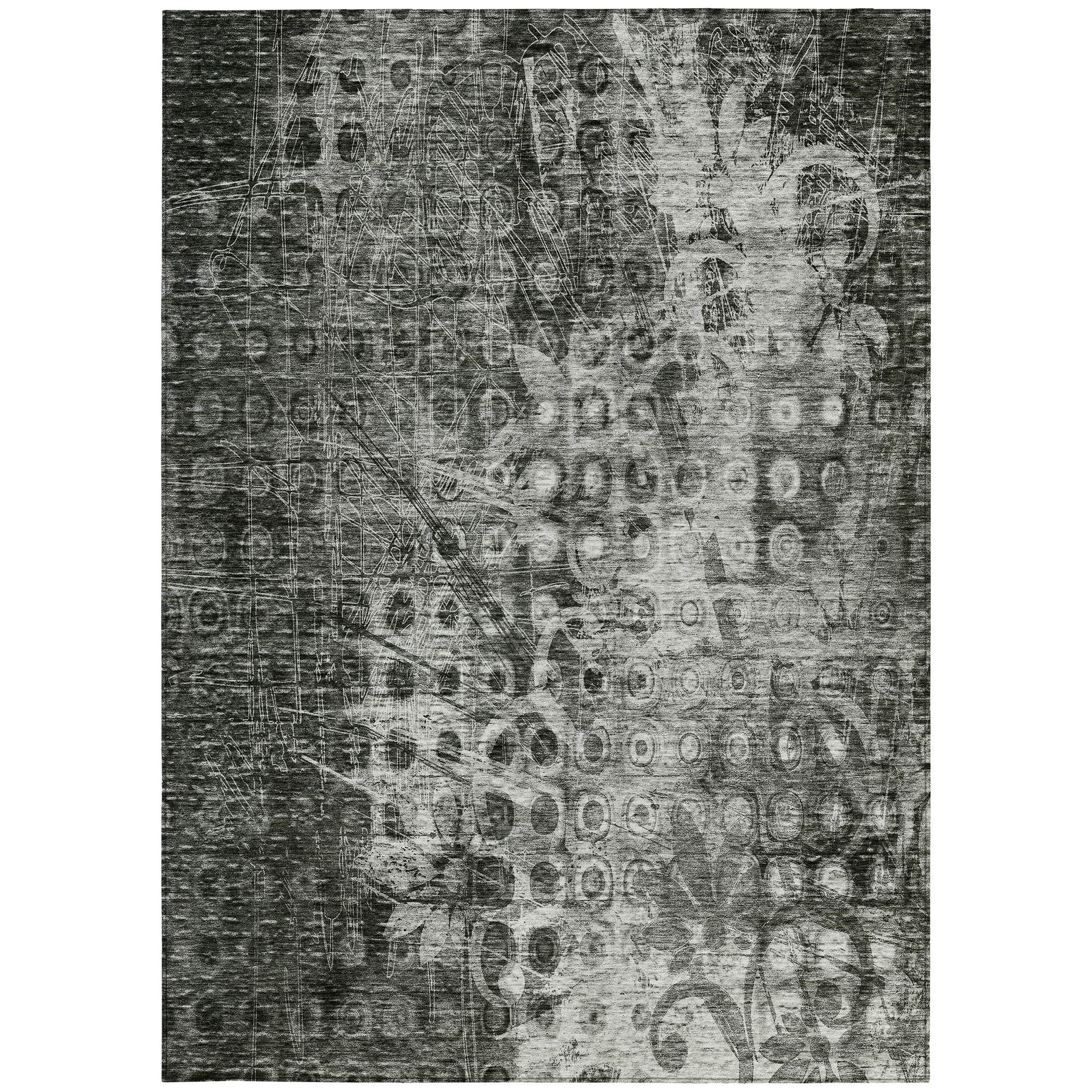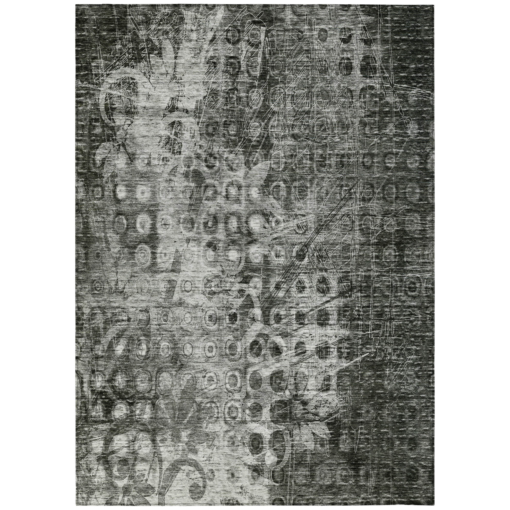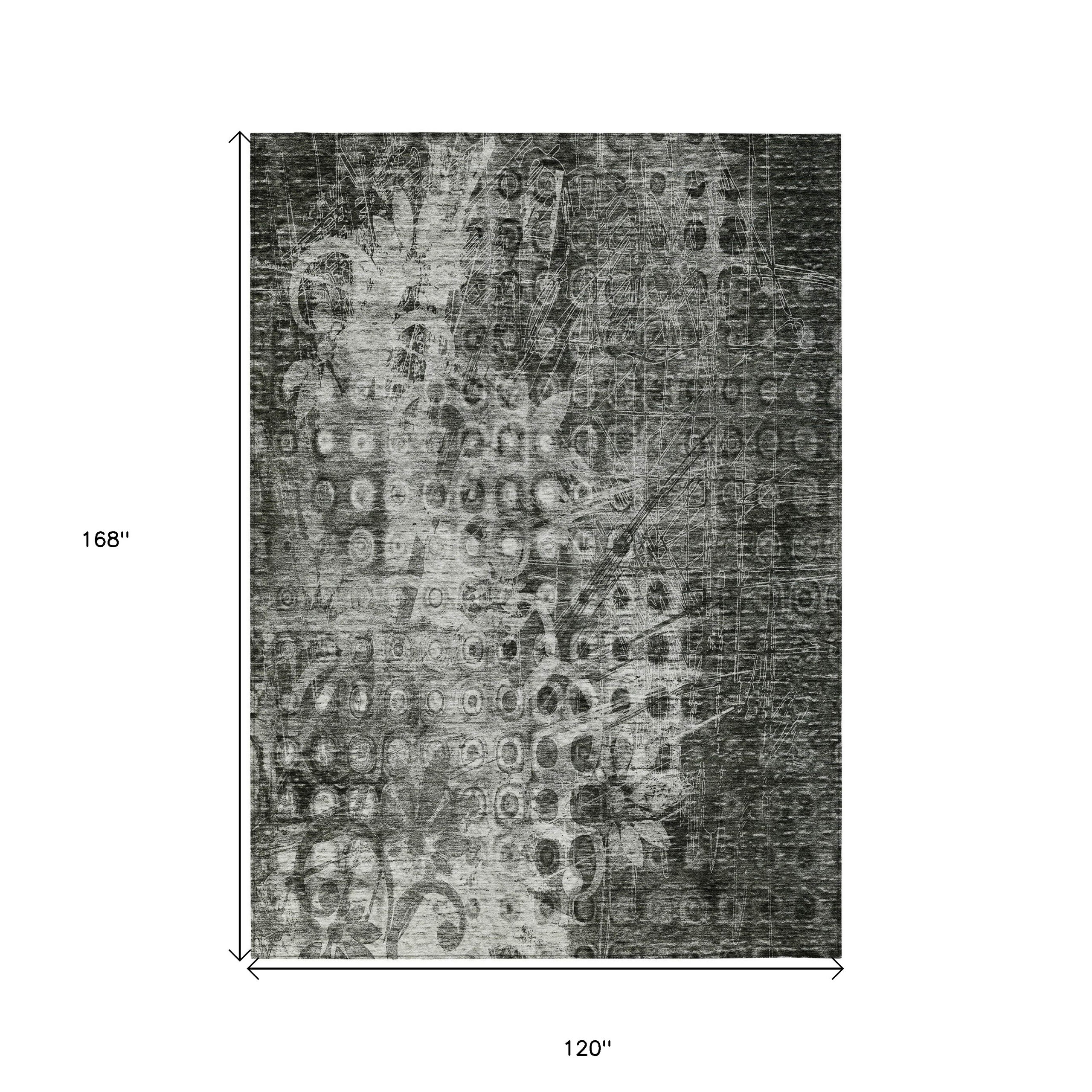 10′ X 14′ Charcoal Ikat Washable Indoor Outdoor Area Rug