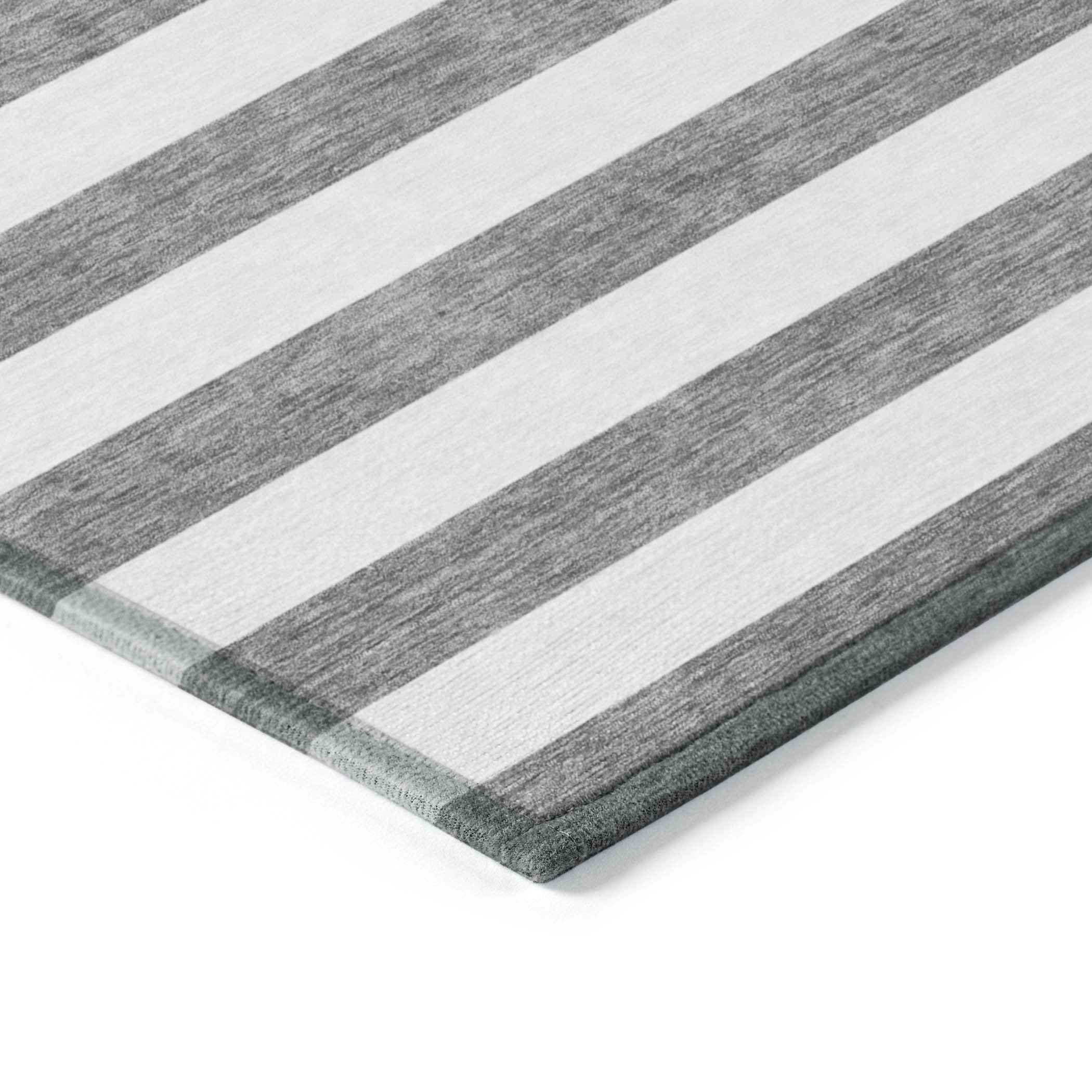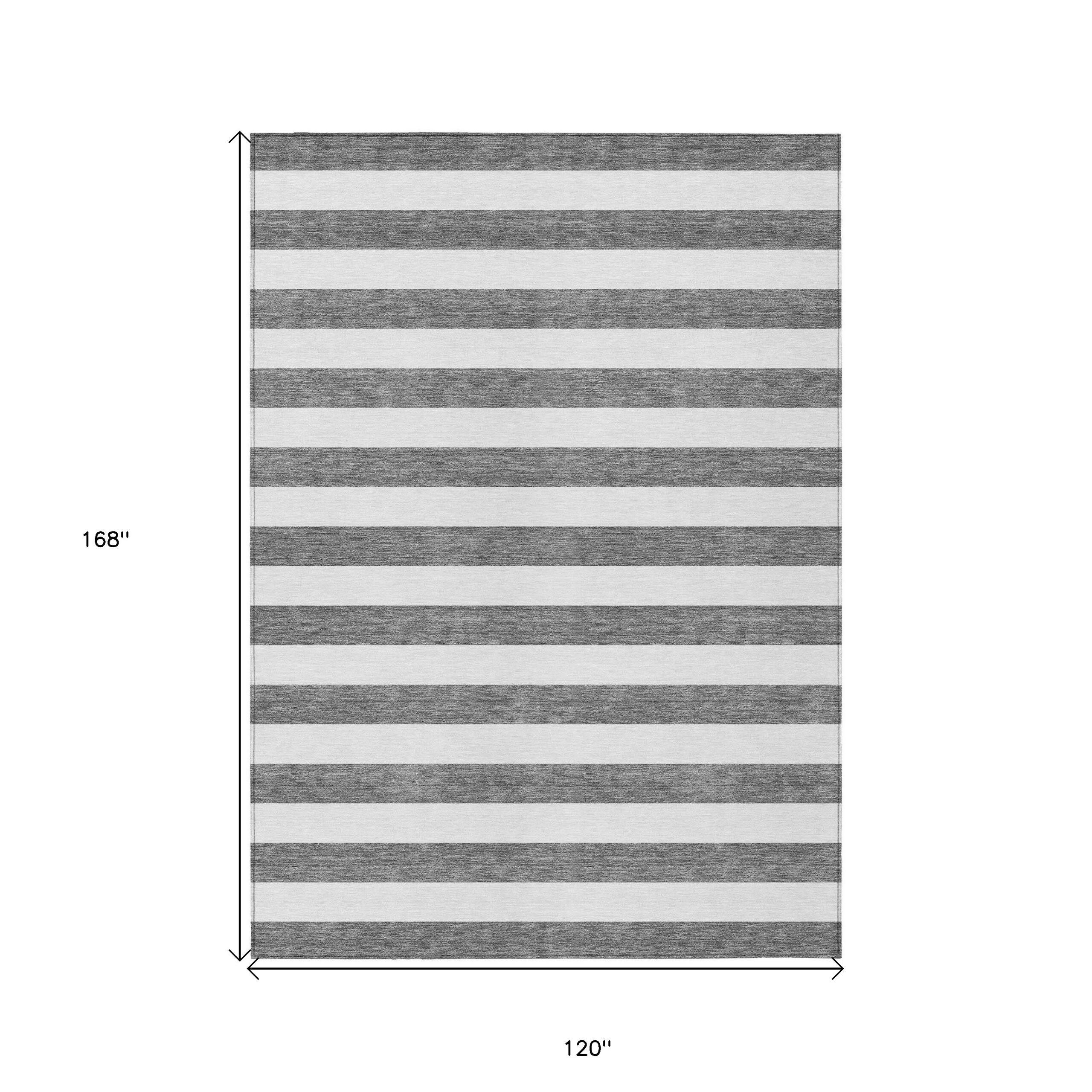10′ X 14′ Charcoal Striped Washable Non Skid Indoor Outdoor Area Rug