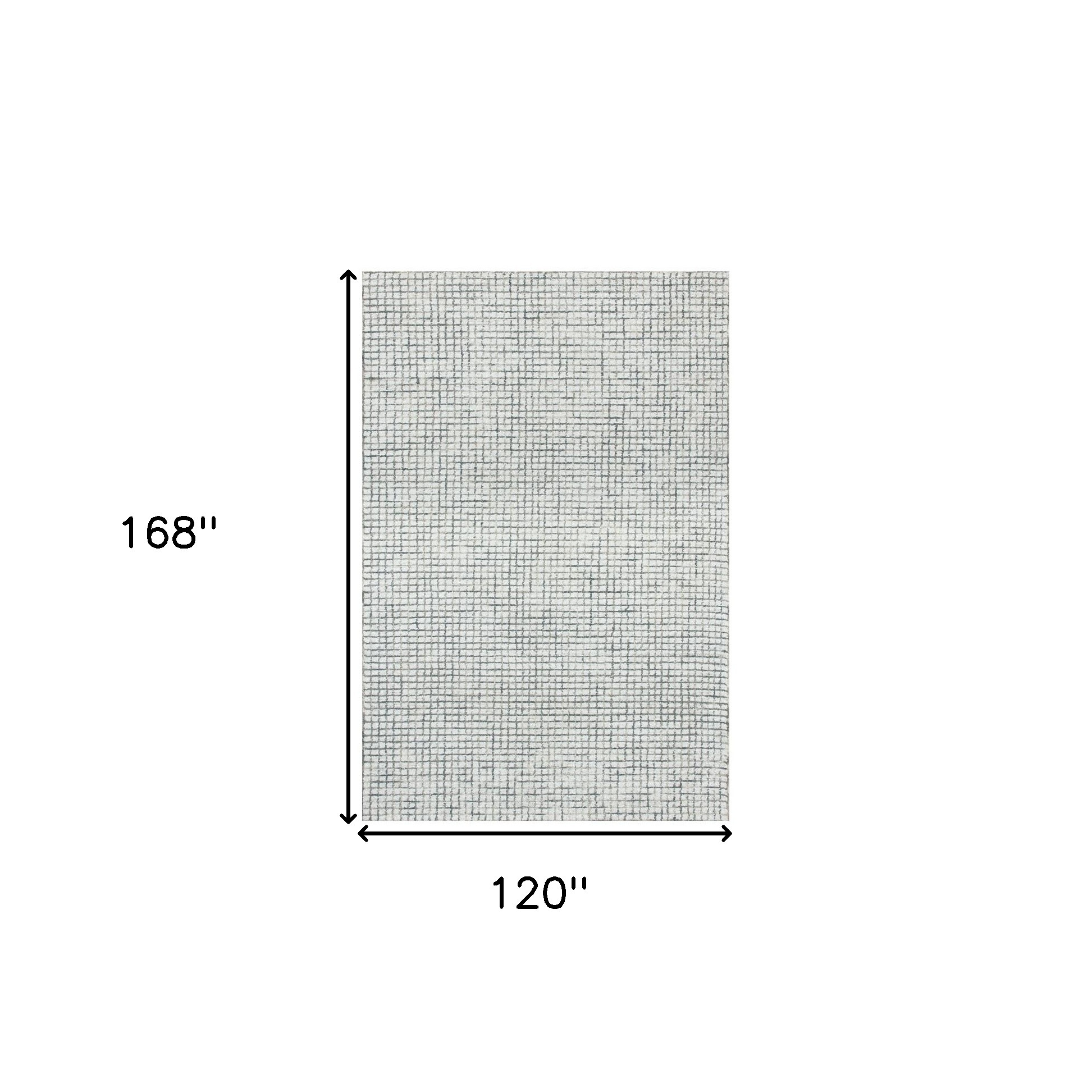 10′ x 14′ Gray and Ivory Wool Checkered Hand Hooked Area Rug