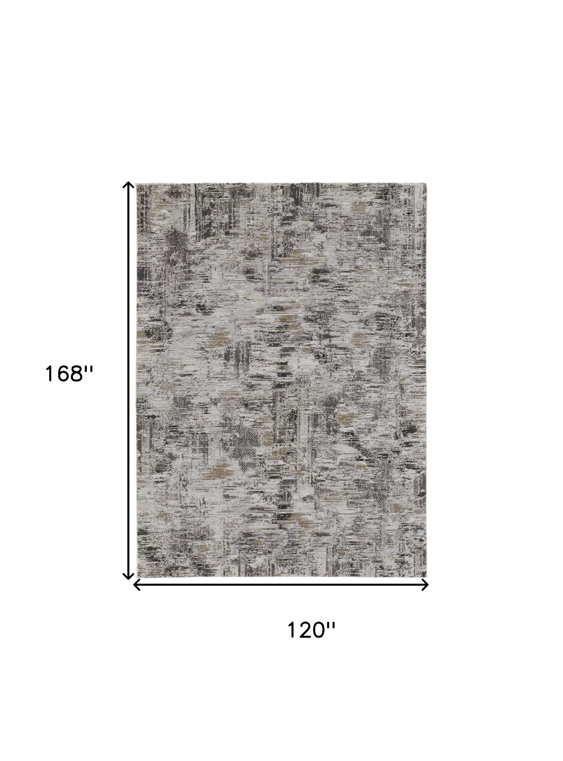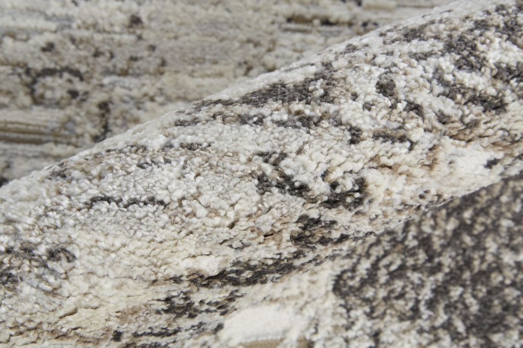10′ X 14′ Ivory Gray And Brown Abstract Power Loom Distressed Stain Resistant Area Rug