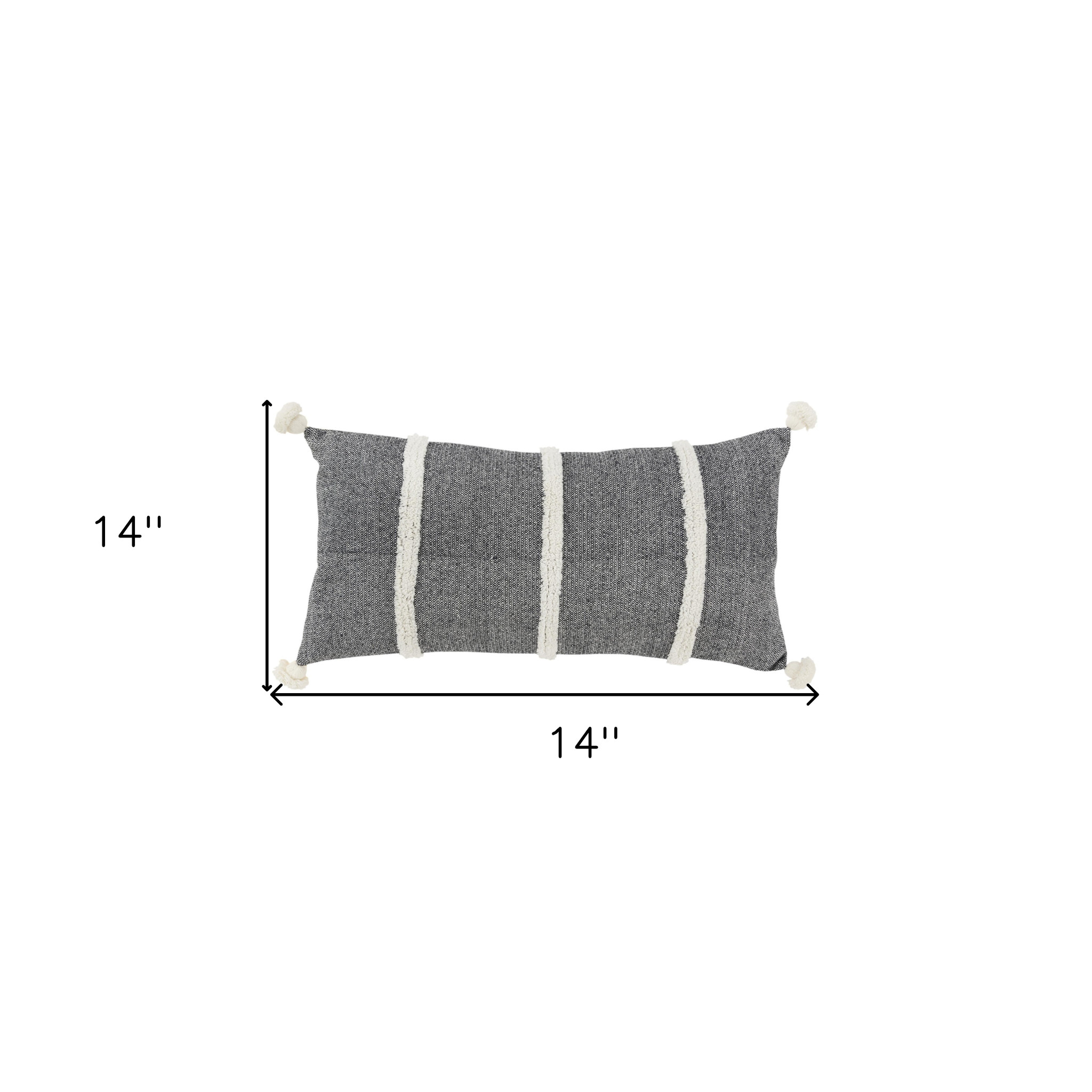 14″ X 14″ Black and White Cotton Pillow With Tassels Edges