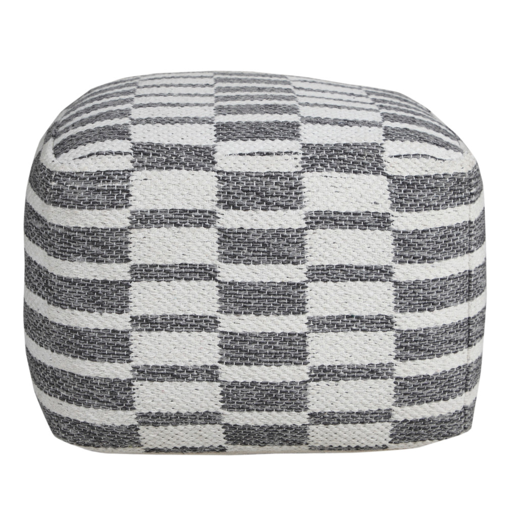 Optimize your space and add some charm to your room with the 18-inch gray 100% cotton ottoman. Ottomans are multi-functional additions to your space that add fashion and practical value. 14-inch H x 18-inch W x 18-inch D