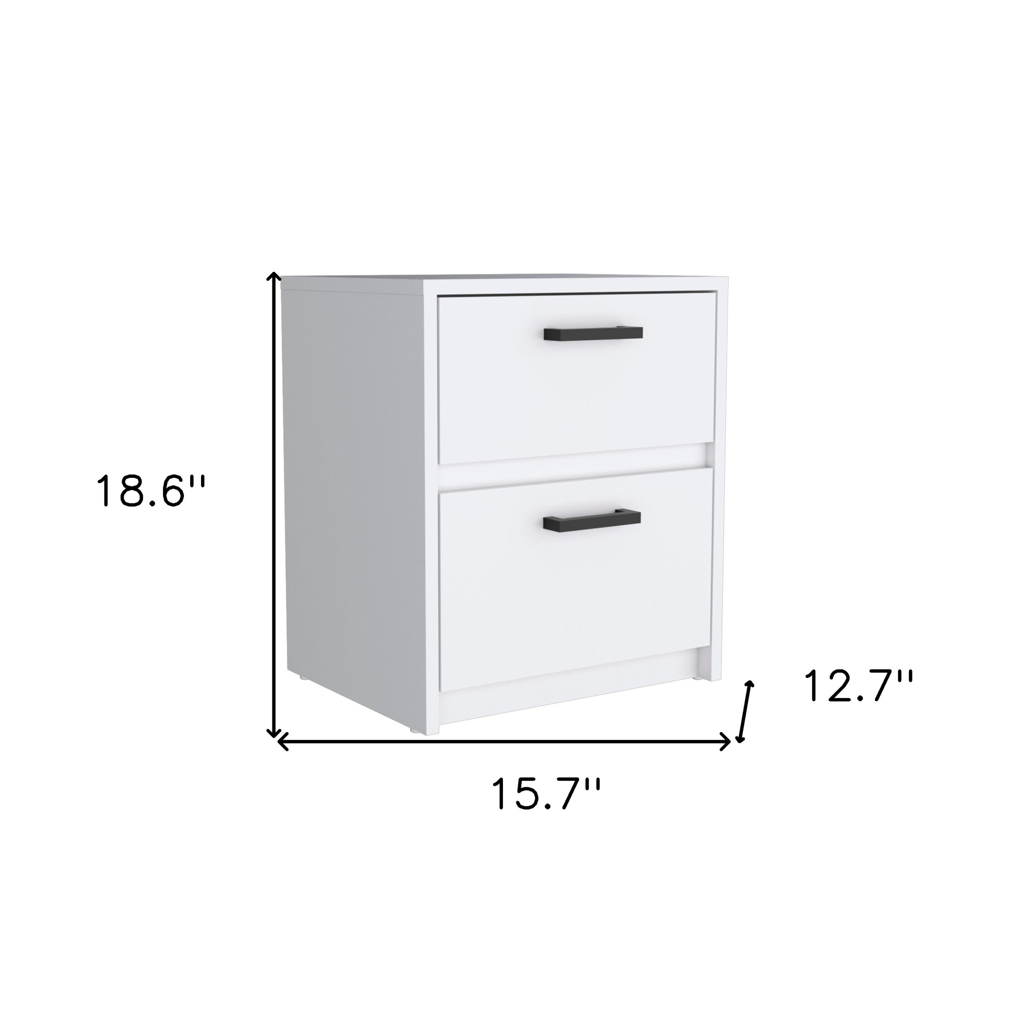 Give your room the look and feel of 5-star accommodations with this 19-inch white two drawer faux wood nightstand. Made of high quality manufactured wood that is built to last. This piece has 2 drawers for your storage needs. The unsung hero of the bedroom, this nightstand is perfect for keeping a glass of water, lamp, alarm clock, jewelry, and more, close by and easily accessible. Nightstands are obviously great beside the bed but can be used just as easily to help battle clutter in your living room, hallway, office, or dining room. 18.6-inch H x 15.7-inch W x 12.7-inch D