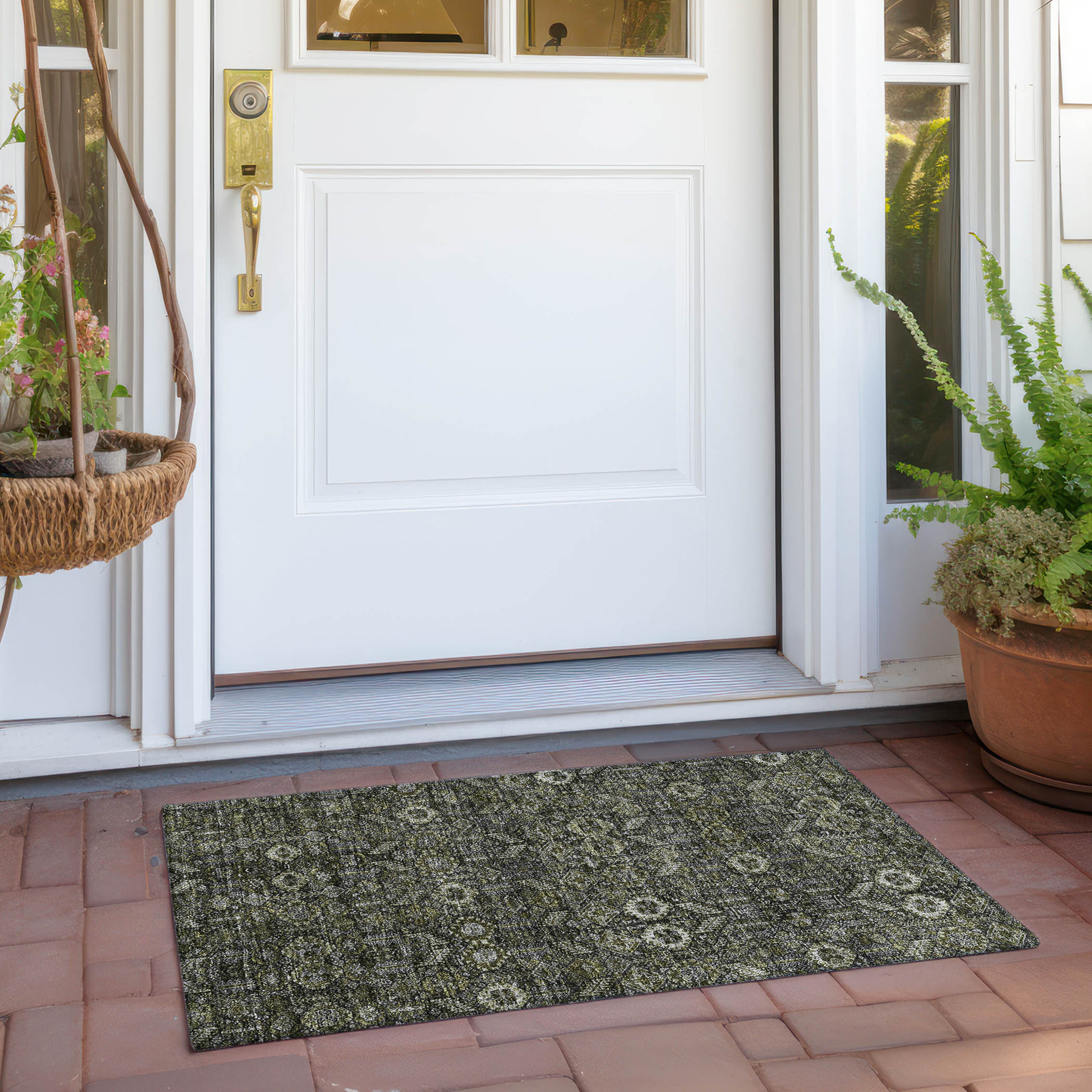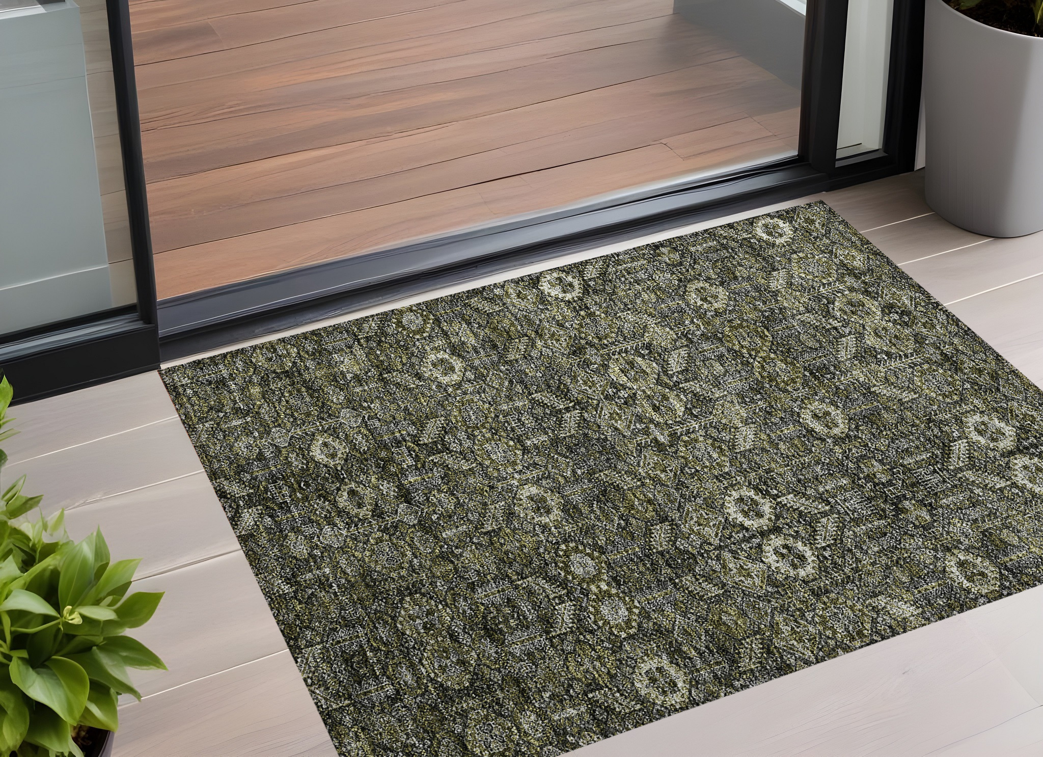 2′ X 3′ Moss Green and Gray Floral Washable Non Skid Indoor Outdoor Area Rug
